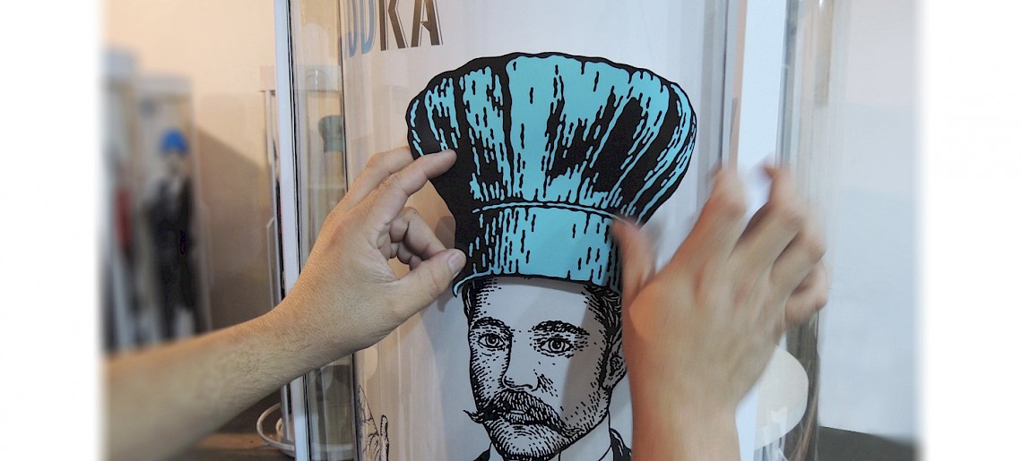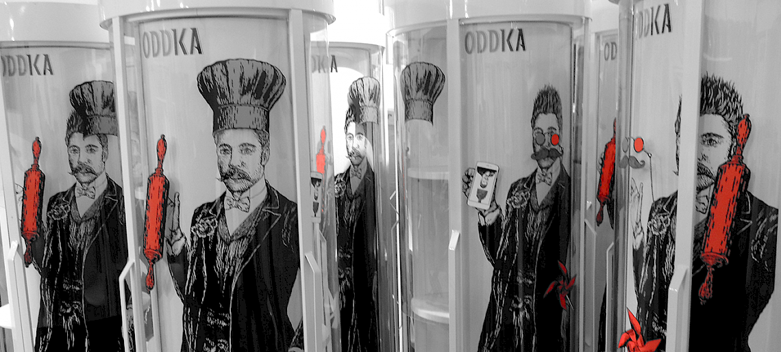 Se diseñó un producto de acuerdo al estilo de la marca: divertido, para un target joven y osado. Para elegir el varietal hay que hacer girar el exterior, cambiando los accesorios que lleva el personaje Wit Oddoski, emblema de ODDKA, un científico polaco, inventor de los gustos de este vodka.