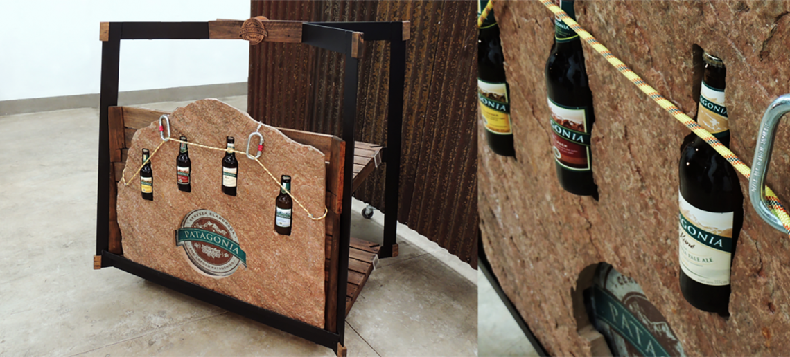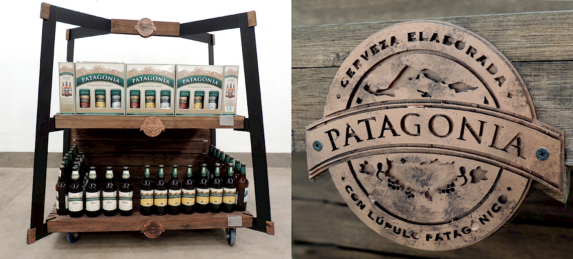 La Isla Patagonia es protagonista de su espacio. Realizada en materiales reales: madera de Eucalipto, piedra de la región patagónica, planchuelas de acero. El resultado es un mueble robusto, portante de un producto de calidad.