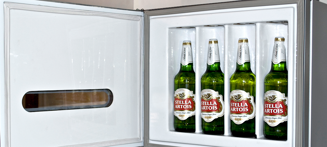 El objetivo cumplido fue enfriar botellas de cerveza en el punto óptimo de frío para el consumo regional en el tiempo mínimo. Las cervezas se pueden dejar en este compartimiento del freezer sin que estallen.