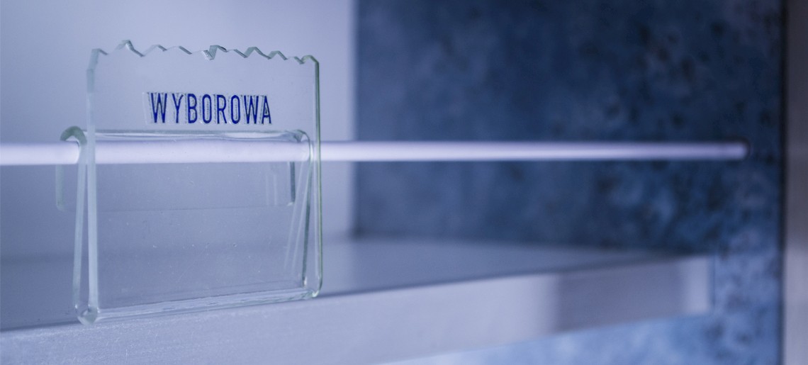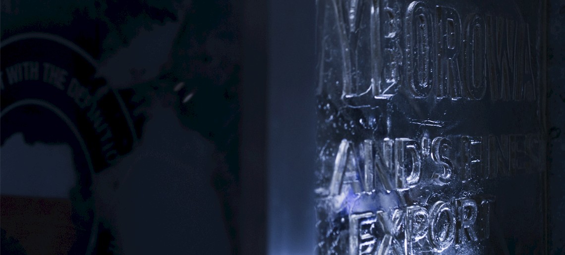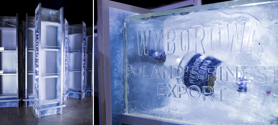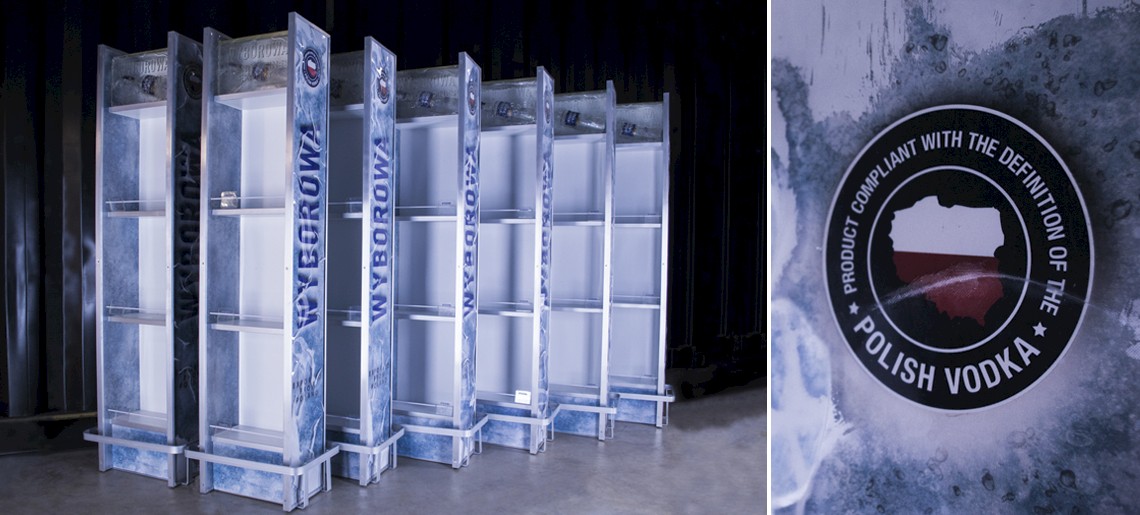 Exhibidor del producto Vodka Polaco. Cactacterizado por la sensación de frío, planteamos una estructura que alude a hielo, conformado por estantes divisores y la presencia de la marca en sus laterales